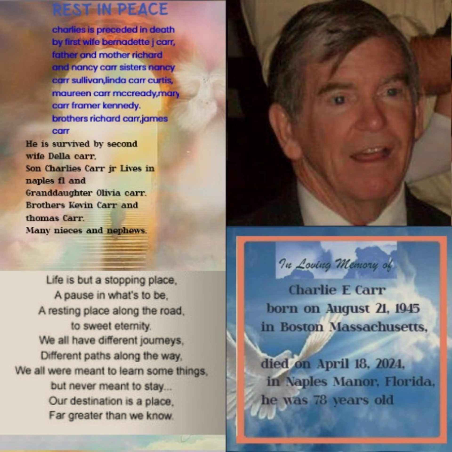 Obituary Share Charles Edward Carr, 78, of Naples, passed away on Thursday, April 18, 2024. Family services will be private.